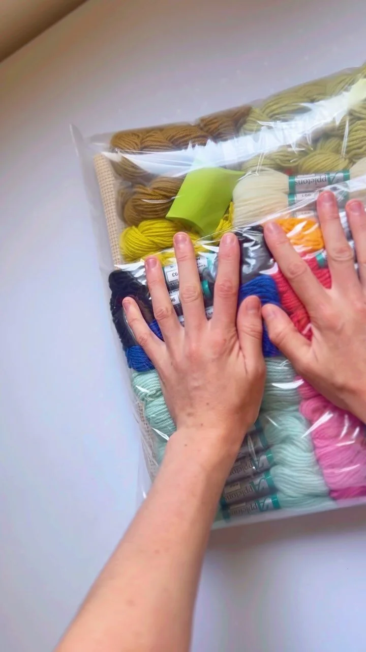 I started my business way back in 2007, when I was living in France and couldn’t find any kits that I wanted to stitch. I have loved all forms of needlework, drawing and making since childhood. After college I worked in Graphic Design and learned a lot about layout, colour, scale and typography which has informed my work. I think of myself very much as a designer and illustrator that works mainly in wool, rather than solely a needleworker. I adore the softness, texture and colour that wool can bring to a space and I keep the traditional methods and materials used in these crafts, injecting my own vision. I am drawn to bold design, bright colour, drama, typography, the unexpected and the whimsical. I always keep in mind how any design would create a focal point in the home.